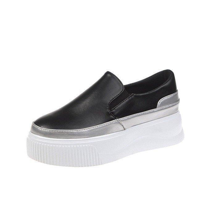 【値下げ】スリッポン スニーカー レディース 厚底パンプス 靴 シューズ PU スニーカーシューズ 黒 白 フラットシューズ ローカットスニーカー