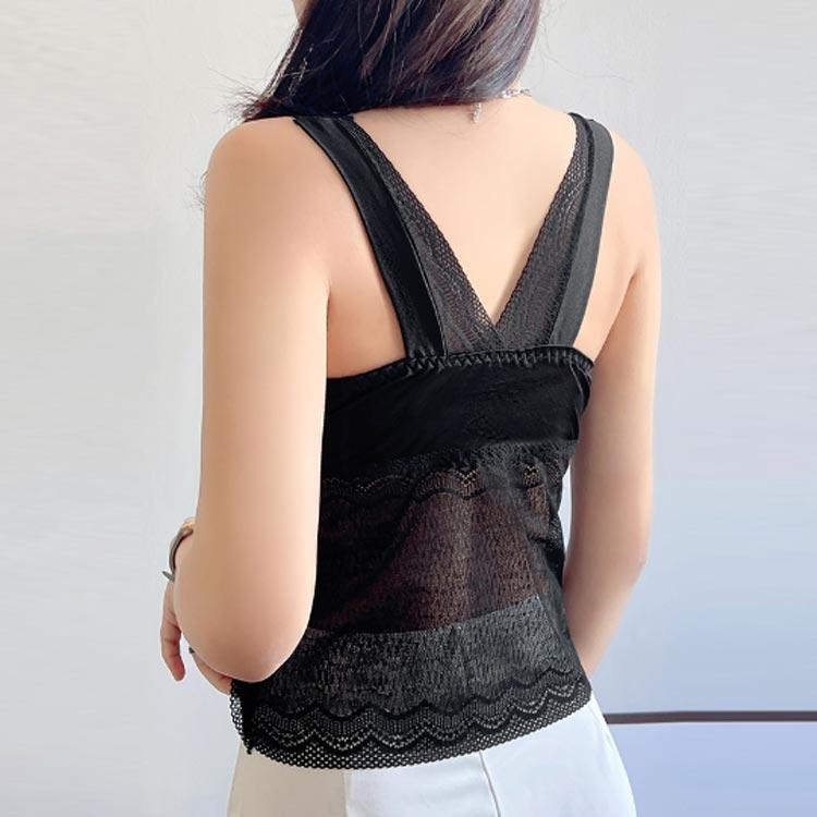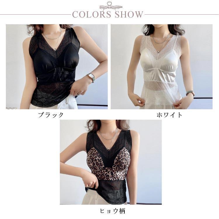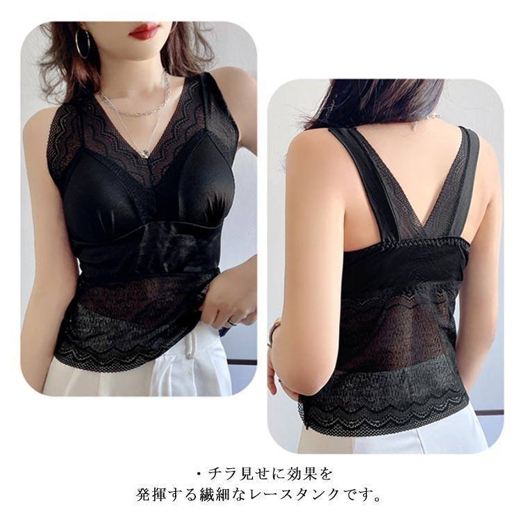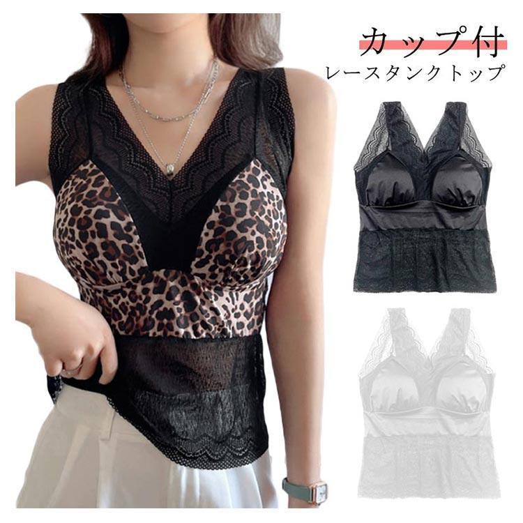 インナー カップ付タンクトップ レース レディース パッド一体型 見せブラ 下着 カップ入り パット付 ノースリーブ 切り替え ノンワイヤ