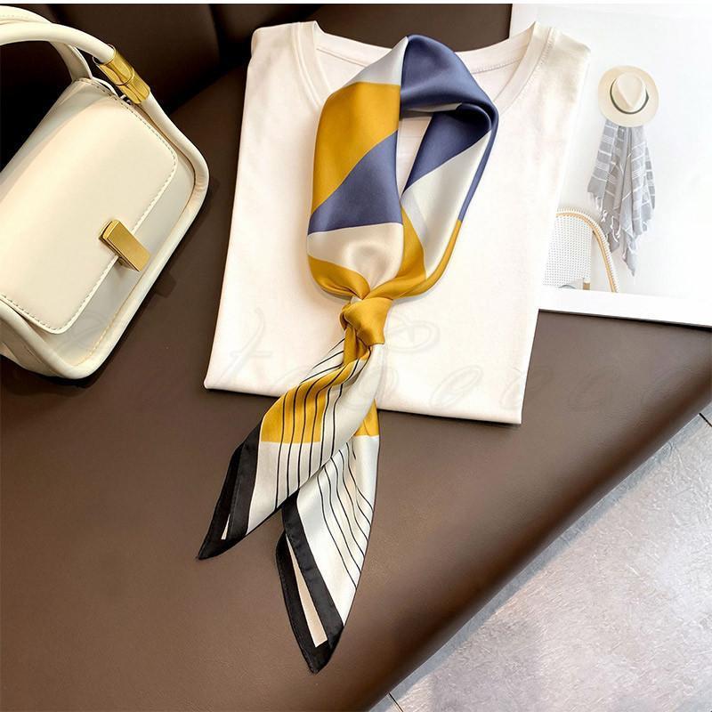 スカーフ レディース フラワー バンダナ バッグチャーム 巻き物 正方形 幾何学模様 シルク調 多機能 アクセサリー 贈り物 春夏秋 きれいめ おしゃれ