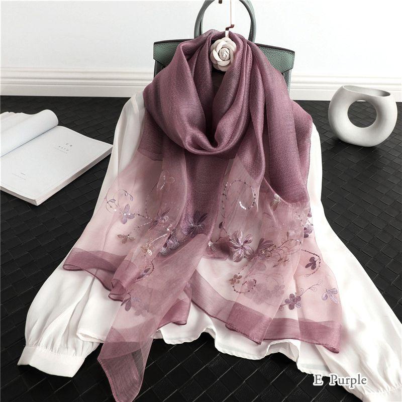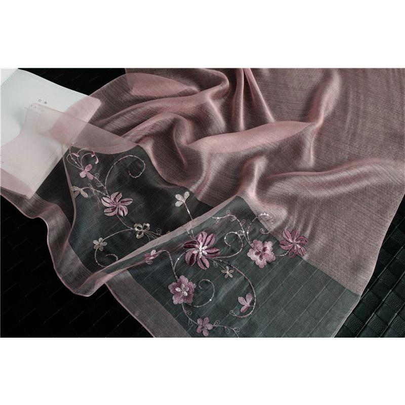 スパンコールがついたエレガントな花柄刺繍シルクウール大判ストール