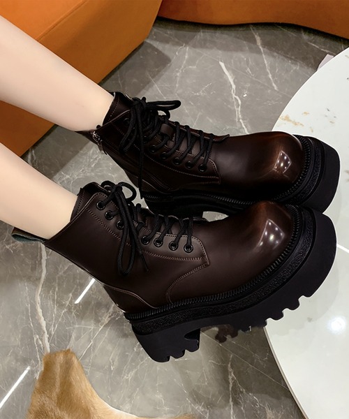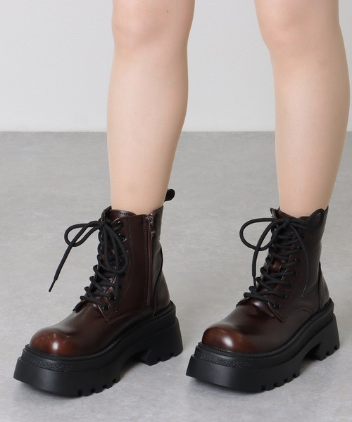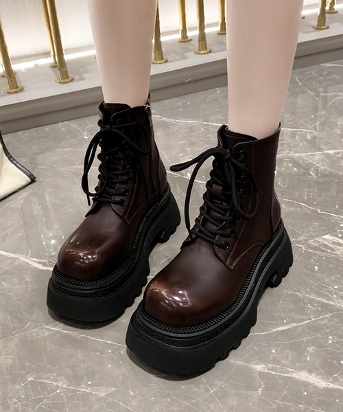 商品名:レザー調 厚底 レースアップ ショート ブーツ