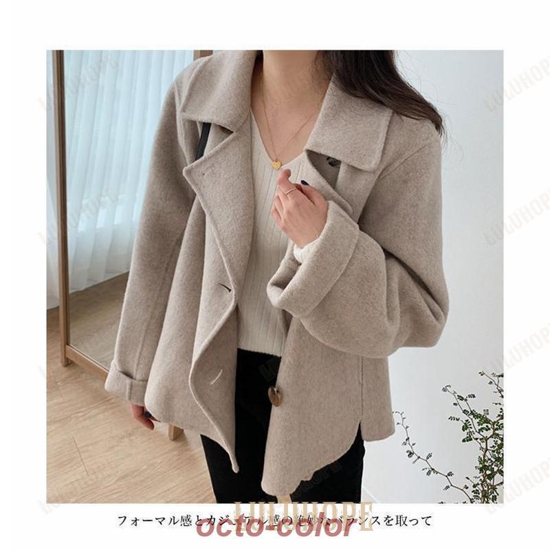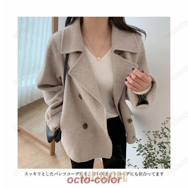 Pコート レディース ハーフコート ツイードジャケット チェスターコート ダブルボタン 秋冬 アウター 体型カバー 通勤 ピーコート お洒落 レトロ ゆったり 秋コート 冬コート ラシャコート デート 旅行 ブラウン ベージュ