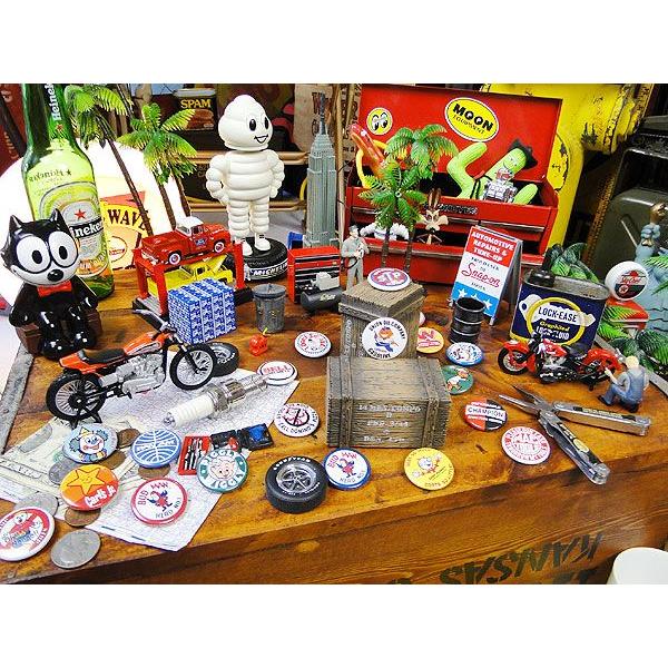 アメリカのカンパニーグッズ好きなら普段愛用してる小物をこんなバッジでカスタマイズしたくない? アメリカを代表する企業ロゴやキャラクターの缶バッジをいっぱい集めてきました!こういうアイテムって探すと意外と見つからないからね!しかもこれだけ種類があると選ぶ楽しさもあって、ますますテンション上がっちゃうでしょ! 定番の帽子やトートバッグはもちろん、ジャケットやペンケースなんて小アイテムをカスタムしてもおもしろそう! アメリカ人っぽくベタベタと色んなブランドをコンビネーションで飾るとよりイメージする姿に近づくはず! 好きなブランドで固めるも良し、色の組み合わせや、見た目の英文字の感覚で選んじゃうのもアリ!自分らしさを表現してアメリカ好きを格好良くアピールしちゃえ!(≧∀≦)/