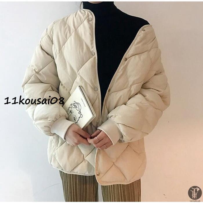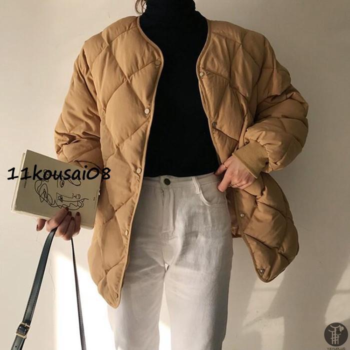 アウター ショート丈 レディース ノーカラー 暖かい キルティングジャケット Hライン 秋冬 ジャケット キルト 中綿 中綿ジャケット 羽織り