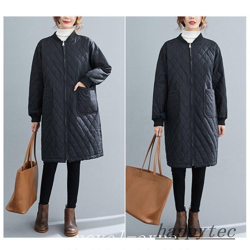 コート 体型カバー キルティングコート 大きいサイズ 防寒 シンプル 軽量 ロング丈 レディース 中綿 ボリューム 秋冬 きれいめ 膝下