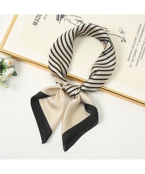 [BOTICO] スカーフ ヘアアクセサリー アクセサリー レディース 88 x 7cm ミニ シルク風 ボーダー 多機能 通勤 旅行 写真 春 夏 秋 冬