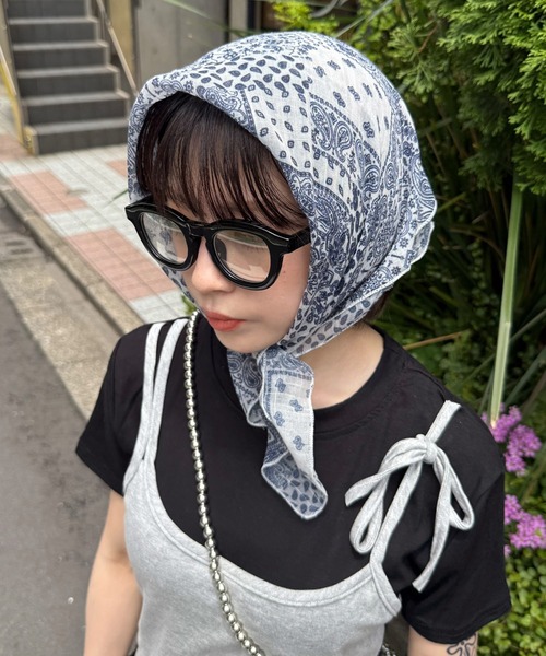 Chiina スカーフ バンダナ / ペイズリー柄 レトロプリント ヴィンテージ風 総柄 ヘッドスカーフ 59×64cm レディース
