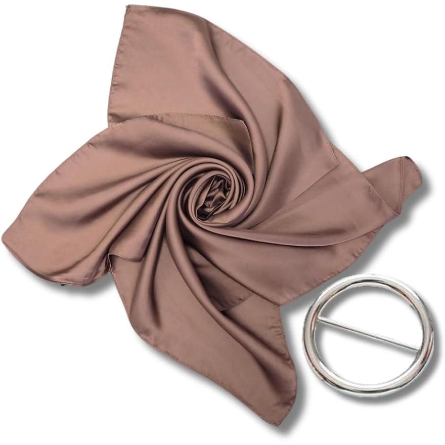 レディース スカーフ 70cm 無地 シルクタッチ ポリエステル – さらりスカーフリングセット(チョコレート)