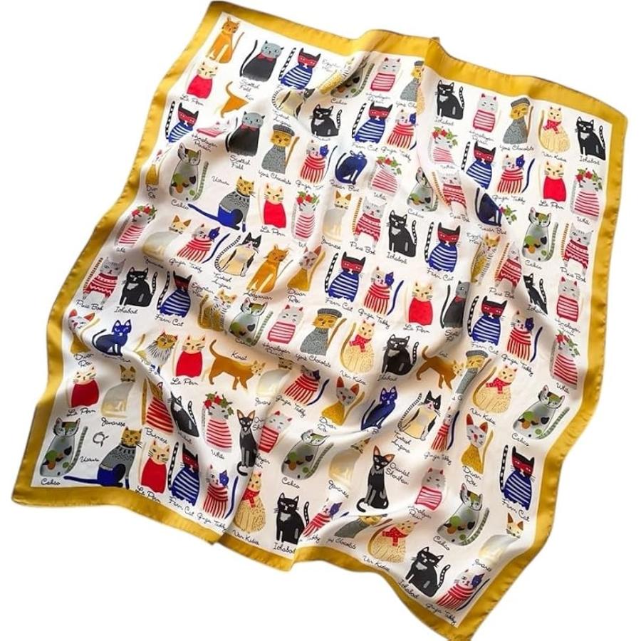 大判 きれいめ シルク調 スカーフ レディス バンダナ プレゼント 70x70cm 大判バンダナ レディース(イエロー ネコ)