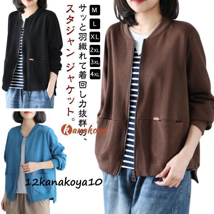 春 秋 レディース スタジャン ゆったり ブルゾン 体型カバー スカジャン お洒落 アウター 長袖 ノーカラー オーバーサイズ