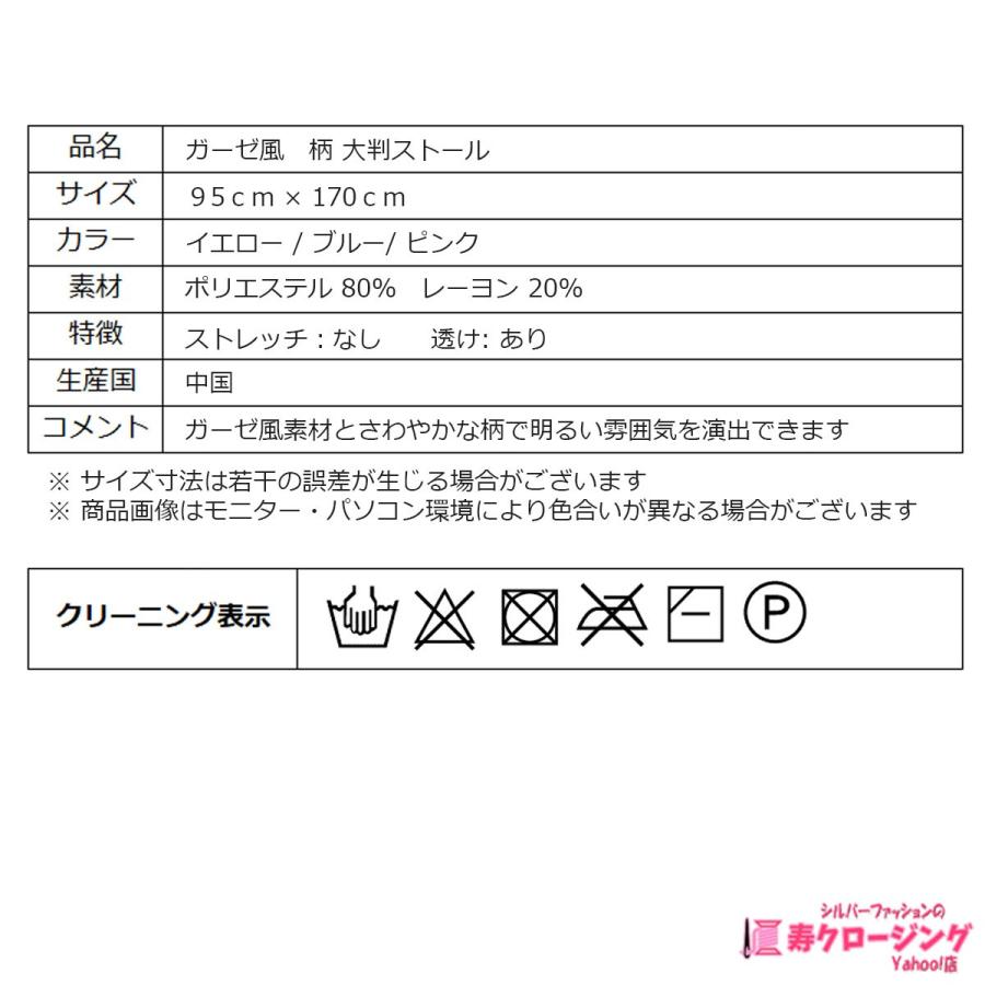 ストール 大判 スカーフ ガーゼ風 柄 UVカット 紫外線 冷房 春 夏 秋 60 70 80 90代 クリックポスト