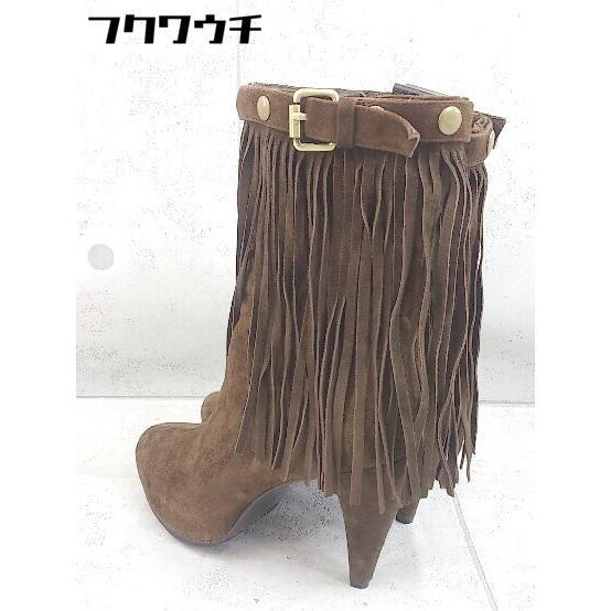 ■ COBRA コブラ サイドジップ フリンジ ミディアムショート ブーツ サイズ37 ブラウン レディース
