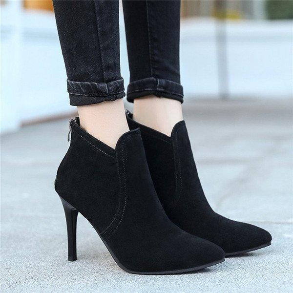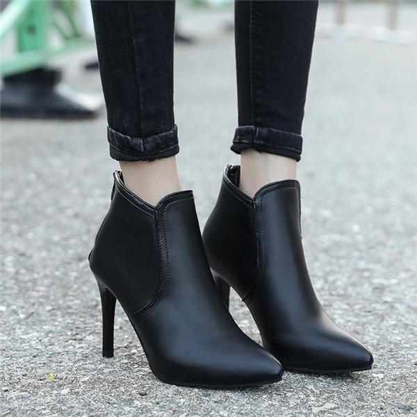 【特価】ショートブーツ ピンヒール PU合成皮革 黒 ヒールブーツ ハイヒール シューズ 大きいサイズ 秋 冬レディース靴 美脚 レースアップ ファスナー付き