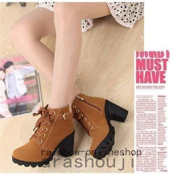 【値下げ】エンジニアブーツショートブーツレディースレースアップ秋冬靴編み上げブーツ厚底ハイヒール太ヒールジッパー付き金具付き暖かい