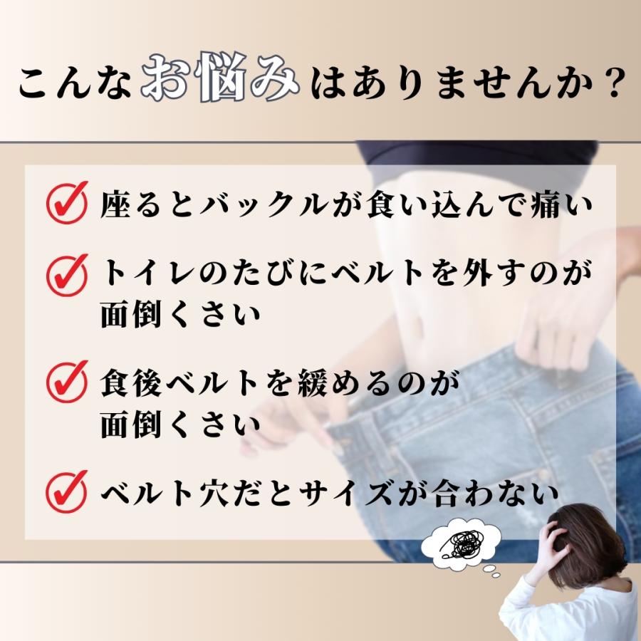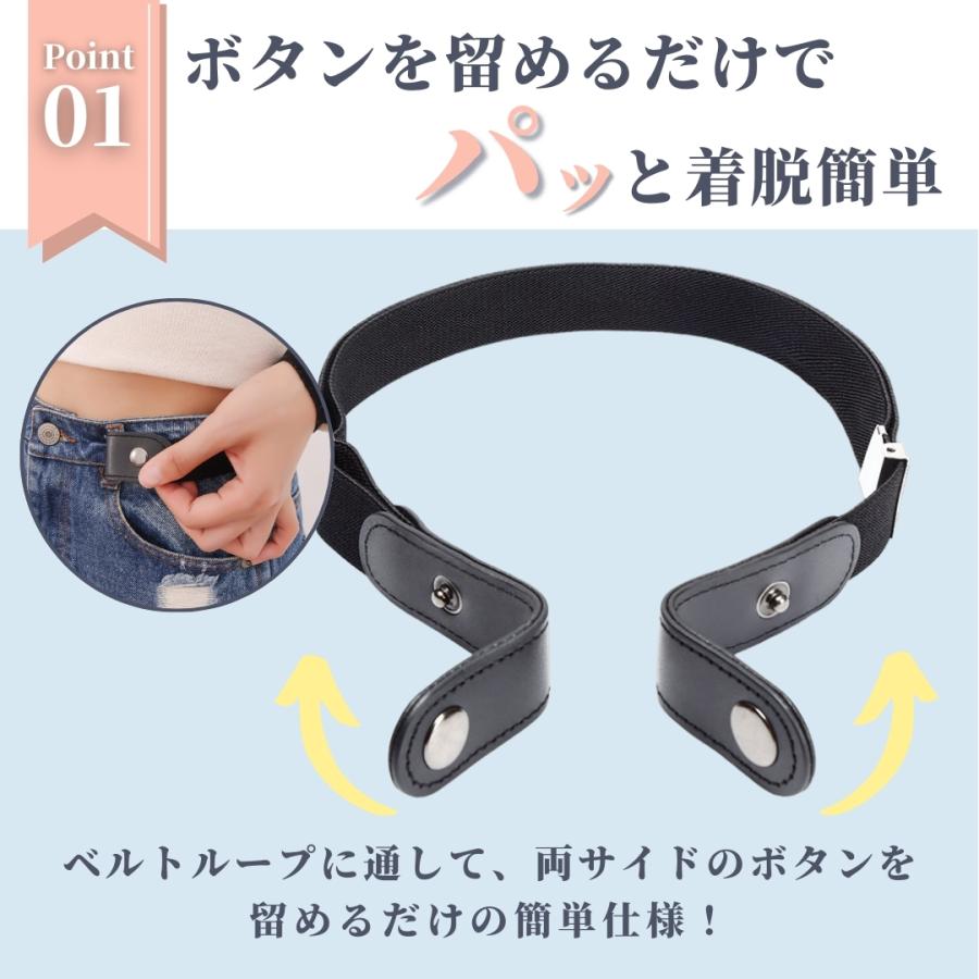 ・バックルや穴がなくボタンで留めるだけなので、着脱が簡単にできます。また、バックルがない為スリム効果も期待できます。