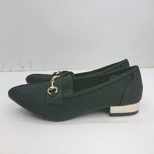 ◇ Θ FLICKA ポインテッドトゥ ビット装飾 ヒールローファー サイズL ブラック ゴールド レディース E