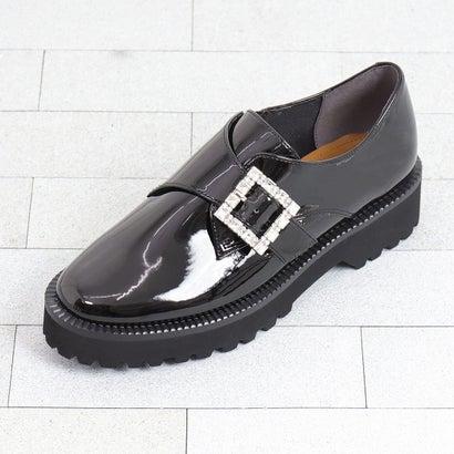 artemis by DIANA アルテミス バイ ダイアナ 厚底ビジューバックルローファー (黒合皮エナメル)