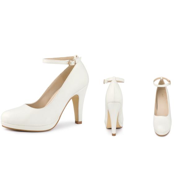 女性用パンプス、ラウンドトウ、スティレットヒール、足首ストラップ、プラットフォーム