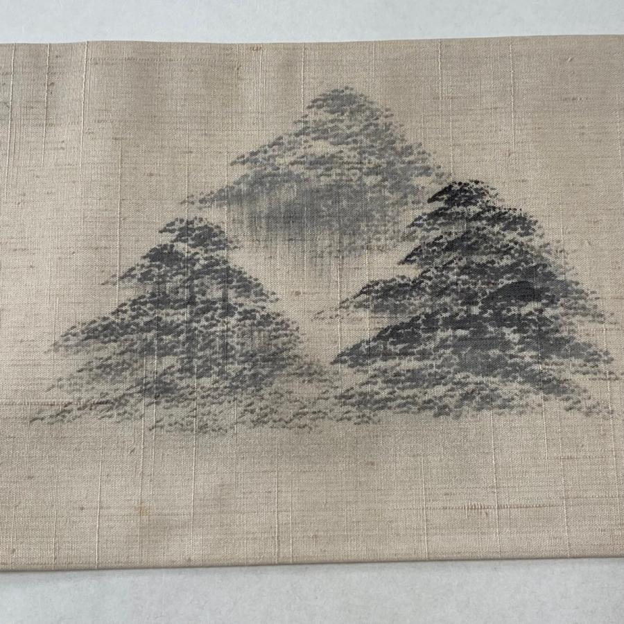 名古屋帯 美品 優品 紬地 建物 風景 ぼかし ベージュ 正絹 中古