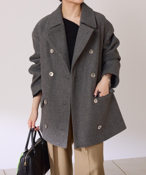 商品名:【WEB限定カラーあり】ウール混メルトンライクピーコート