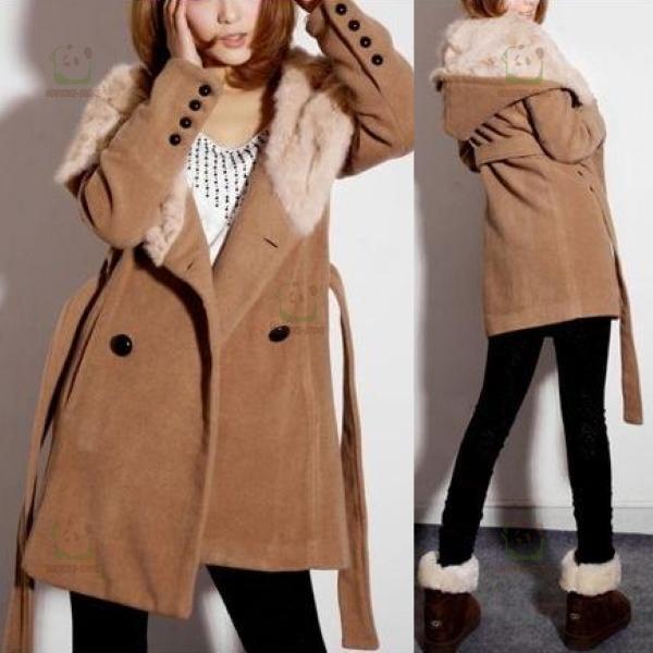 ファーフード付きのPコートです。メルトン素材とロング丈で暖か。