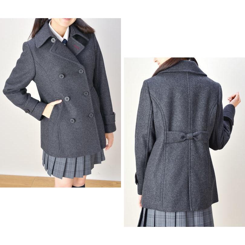 スクールコート 女子 スリムピーコート ネイビー・グレー・ブラック 学生用コート マフラープレゼント中 女の子らしいリボン風背ベルトでハイウェストを強調